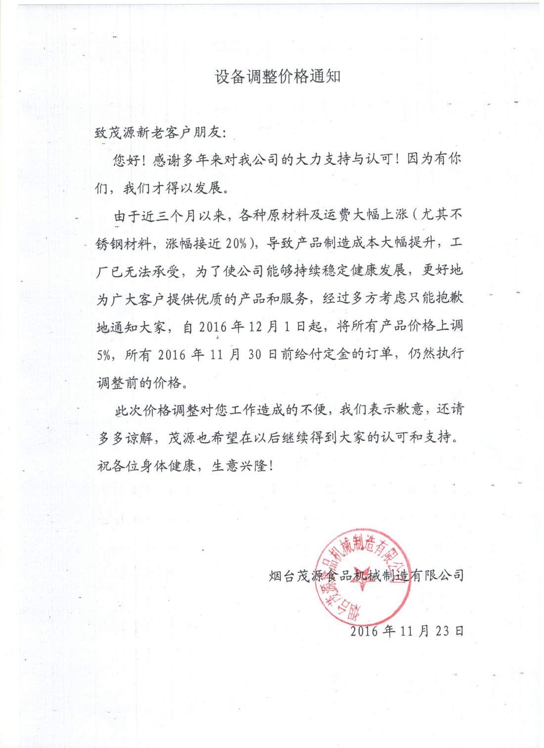 關于我公司上調所有產品價格的通知