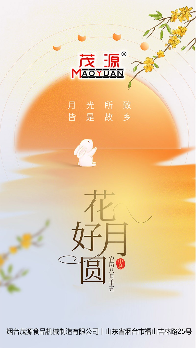 明月寄相思,佳節慶團圓。在這個溫馨滿溢的中秋佳節,煙臺茂源食品機械向您致以最誠摯的祝福!